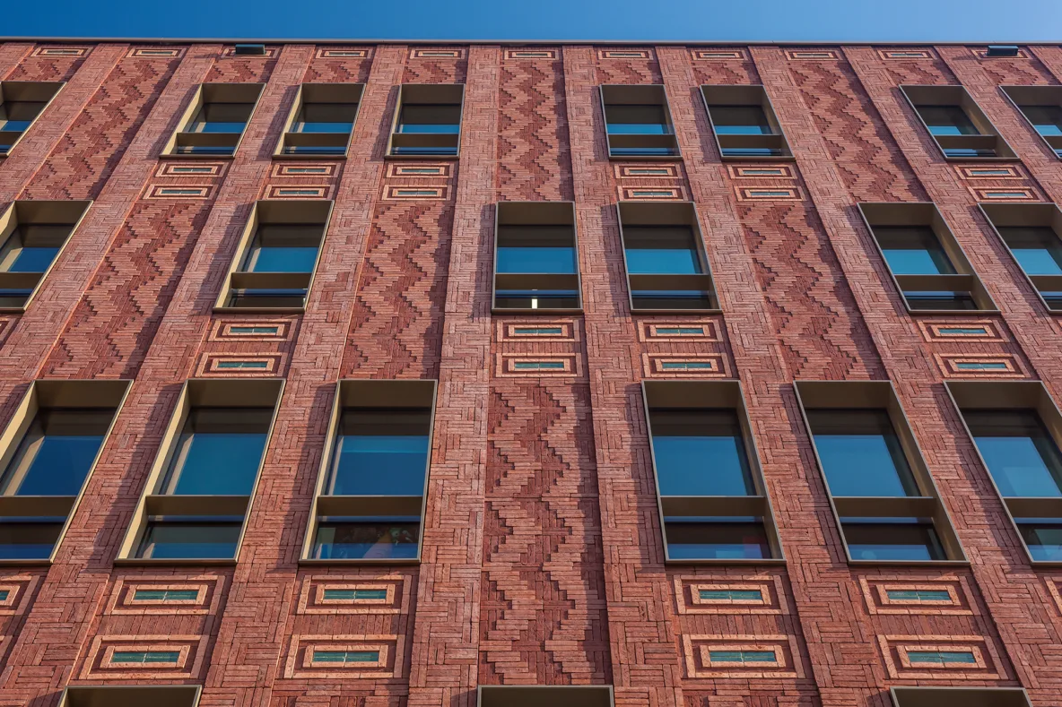 De architectuur van Saxion Edith Stein is ingetogen en duurzaam. In de detaillering is gezocht naar een eigentijdse vertaling van klassieke materialen, passend bij de historische context. De gevels zijn opgebouwd uit prefab baksteenpanelen, zorgvuldig ontworpen om rijke metselwerkdetails te realiseren met minder materiaalgebruik en een kortere bouwtijd. Deze technische innovatie maakte het mogelijk om binnen een beperkt budget hoge esthetische en bouwkundige kwaliteit te bereiken.