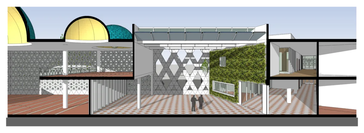 Het antwoord ligt in de introductie van de avlu, de traditionele binnenplaats die hier is heruitgevonden als overdekte ontmoetingsruimte. Deze lichte binnenhof vormt het hart van het gebouw, een plek waar mensen elkaar ontmoeten, waar viering en rust samengaan. Bij grote manifestaties kan de gebedsruimte zich uitbreiden naar de avlu, waardoor het gebouw meebeweegt met het ritme van de gemeenschap.