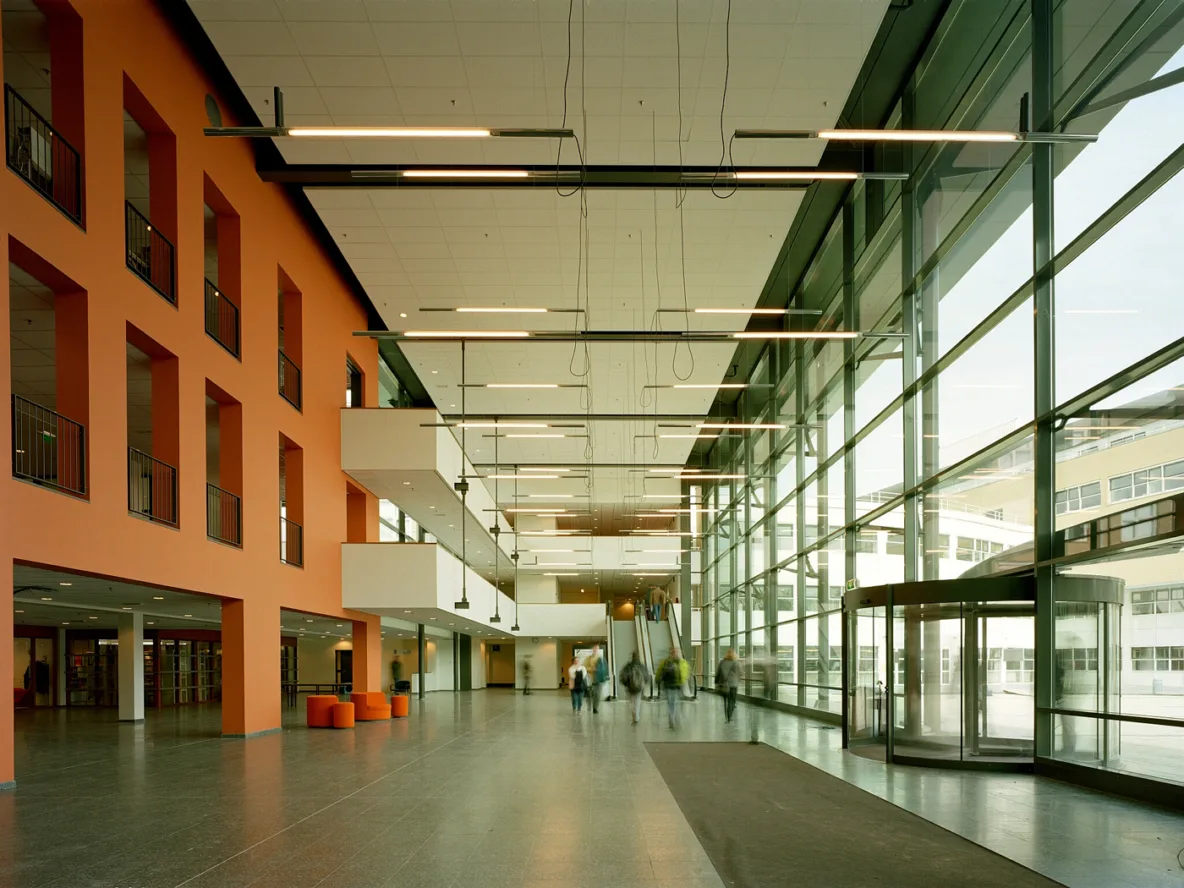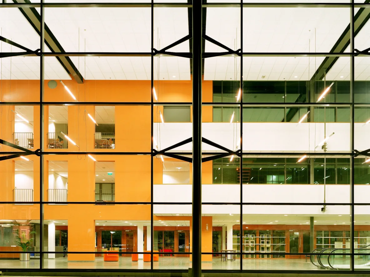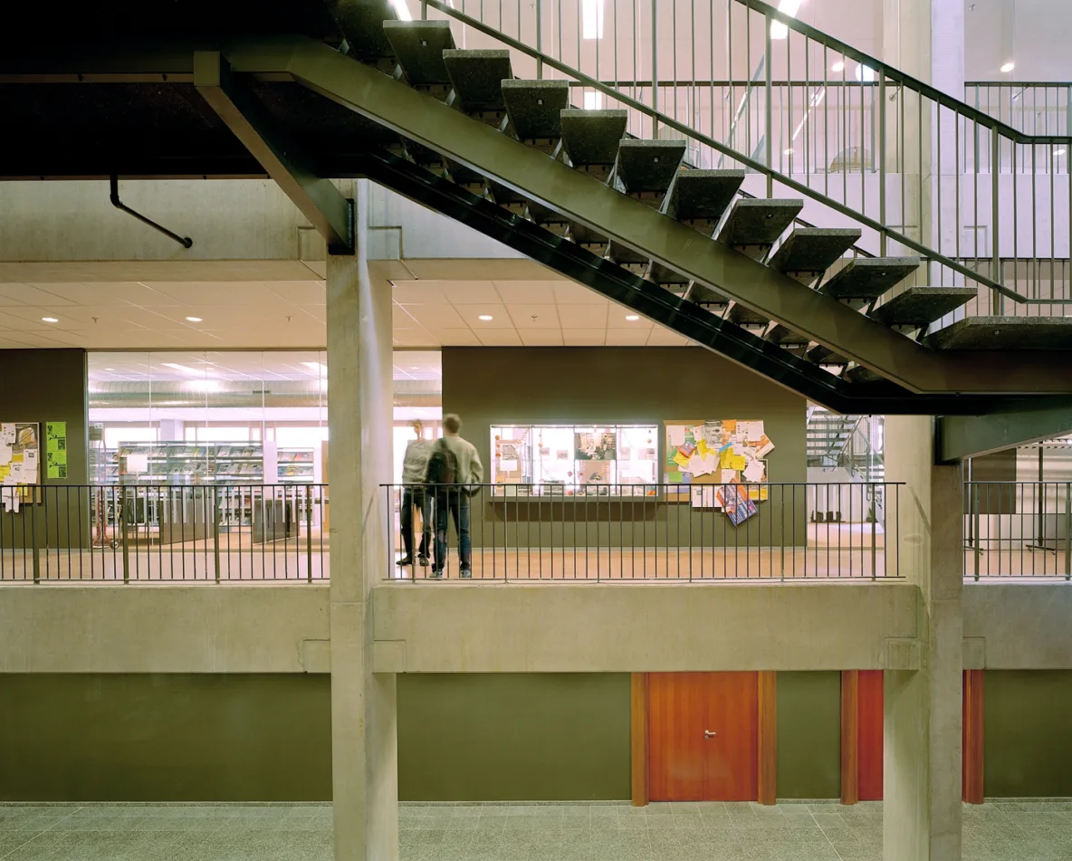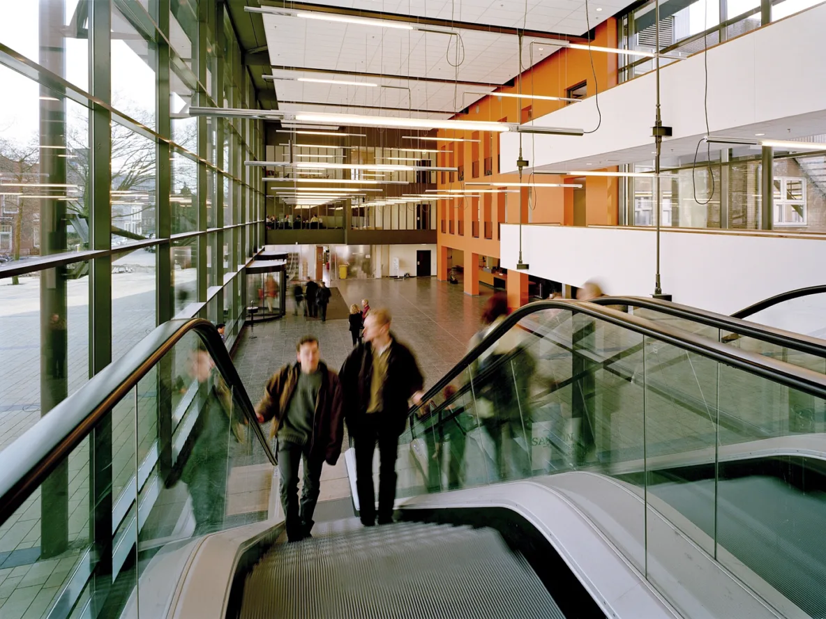 Oude en nieuwe delen zijn verbonden via zichtlijnen en open ruimten die ontmoeting stimuleren. Zo ontstond een hechte leeromgeving waarin samenwerking vanzelfsprekend is.