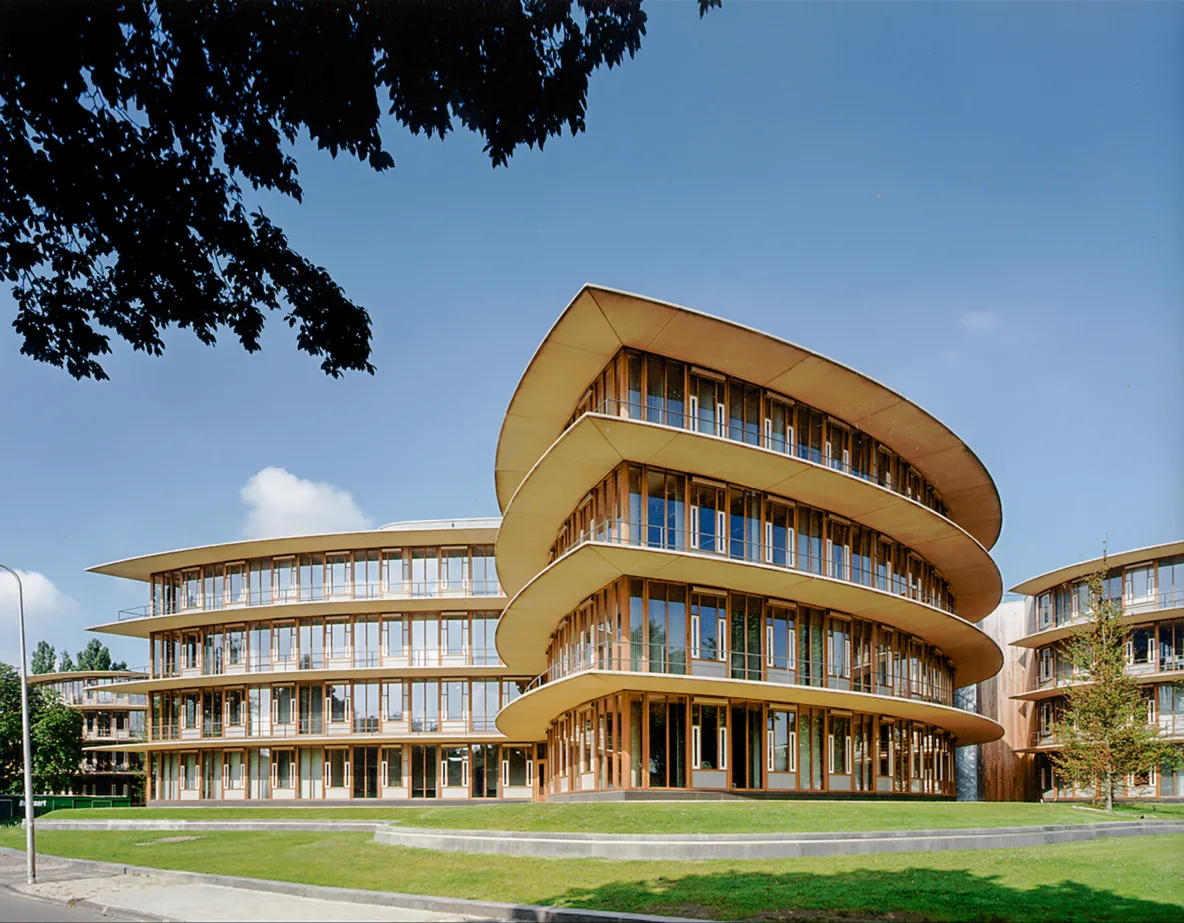 Aan de westzijde, richting het Volkspark, is de campus uitgebreid met glazen paviljoens op lage groene terpen. De gebouwen laten het groen tot diep in het interieur doordringen en bieden vanuit elke ruimte uitzicht op het park. De architectuur is licht en flexibel, zodat de onderwijsruimtes zich eenvoudig kunnen aanpassen aan nieuwe onderwijsvormen.
