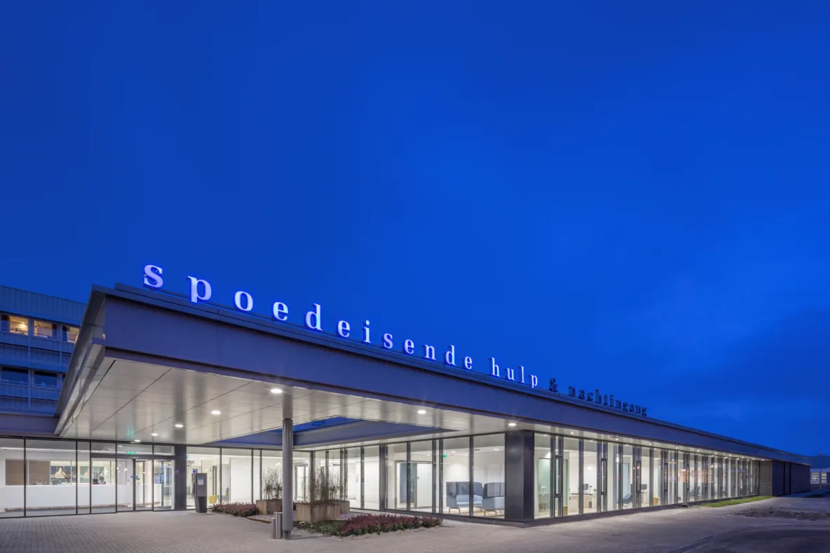 Hoewel ontworpen voor acute situaties, ademt het gebouw een kalme, menselijke sfeer. Privacy en rust voor de patiënt zijn even belangrijk als efficiëntie en snelheid voor het zorgteam. De plattegrond is helder, de routes zijn logisch en de ruimtes zijn afgestemd op uiteenlopende zorgzwaarte, van eenvoudige hulpvragen tot hoogcomplexe zorg. De materiaalkeuze is duurzaam en robuust, en de vormgeving sluit aan op de herkenbaarheid van het ziekenhuis als geheel.