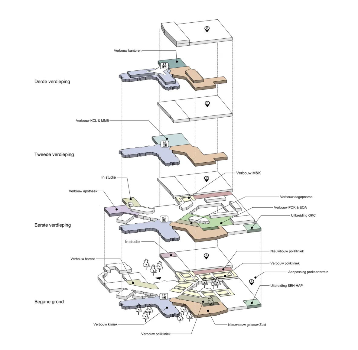 Na Bouwdeel Zuid volgen in het Masterplan nog diverse projecten: de renovatie van de kliniek, nieuwe een- en tweepersoonskamers, uitbreiding van de SEH, vergroting van de ziekenhuisapotheek en de verbouwing van de poliklinieken. Elk onderdeel versterkt het grotere geheel.