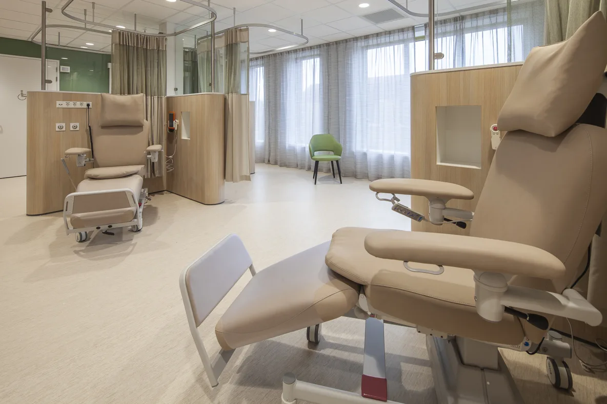 In elke keuze is aandacht voor een helende, gastvrije omgeving. Grote raampartijen bieden patiënten uitzicht op groen en daglicht stroomt tot diep in het gebouw. Waar mogelijk zijn balkons en dakterrassen toegevoegd, zodat ook ernstig zieke patiënten of kinderen die niet buiten kunnen, toch frisse lucht en natuur ervaren.