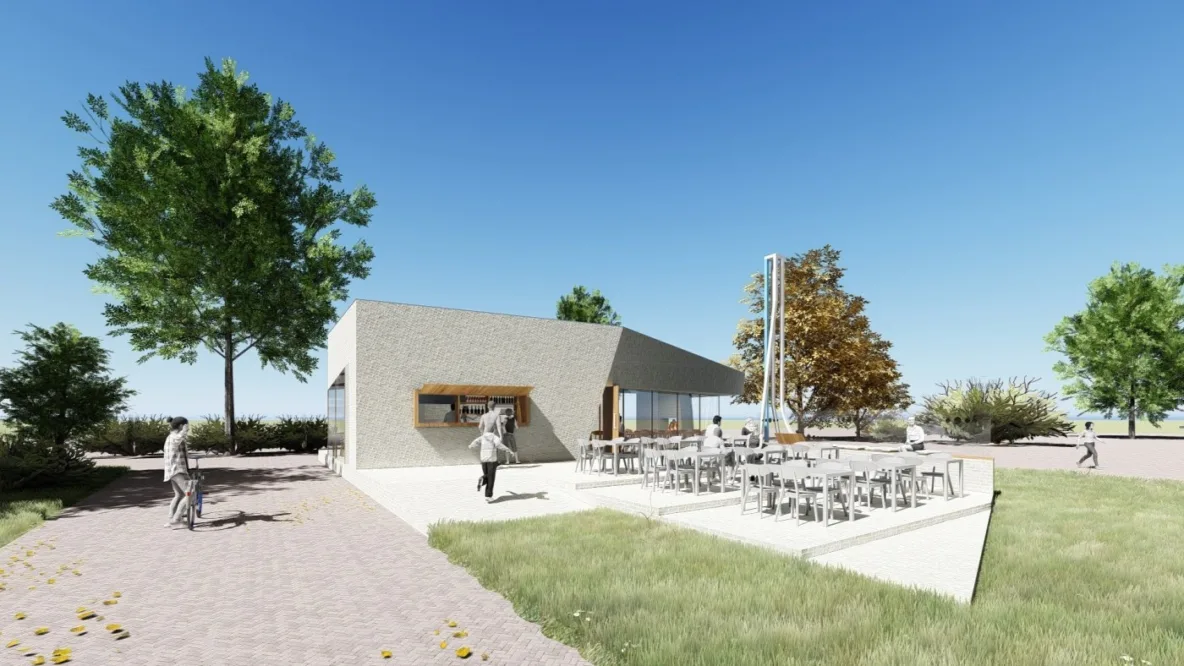 Het nieuwe gebouwtje met veel glas, hoge plafonds en metselwerk gevels laat de zichtlijn vrij vanaf de Marspoortstraat naar de kade en de uiterwaarden. Binnen is er plaats voor vijftig gasten, bij mooi weer is er buiten een terras met uitzicht op de rivier. Verder heeft het restaurant een uitgifteloket voor onder andere ijs.