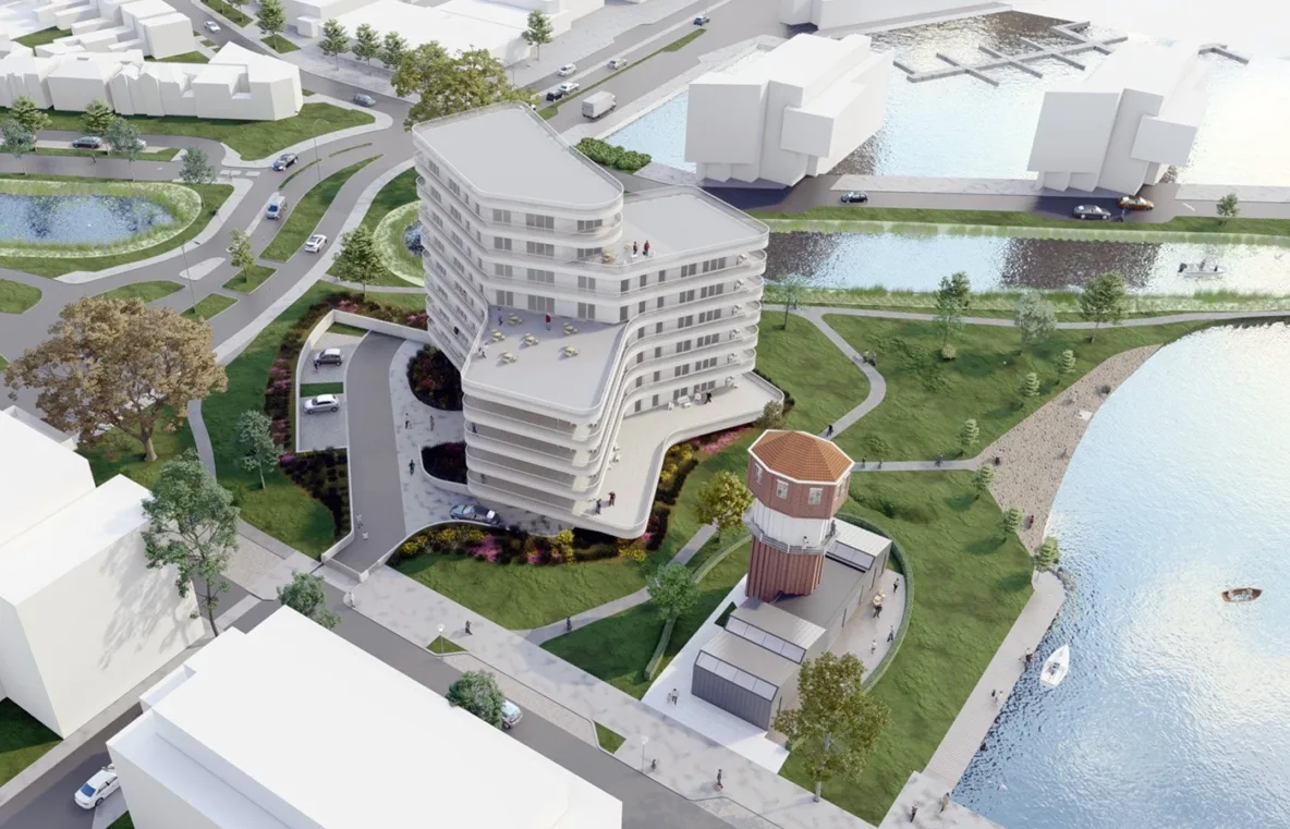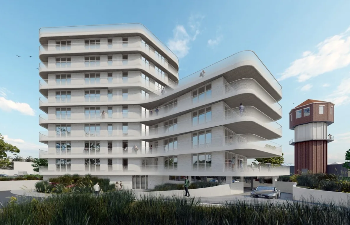 Tussen de monumentale watertoren (’de Stoftoren’) en de rode beukenboom komt een woongebouw te staan dat een combinatie is van drie identieke delen van 4, 6 en 8 etages. De 18 appartementen die ca. 145 m² groot zijn, kennen een driezijdige oriëntatie waardoor zowel in de ochtend, middag als avond steeds een deel van het appartement op de zon gelegen is.
