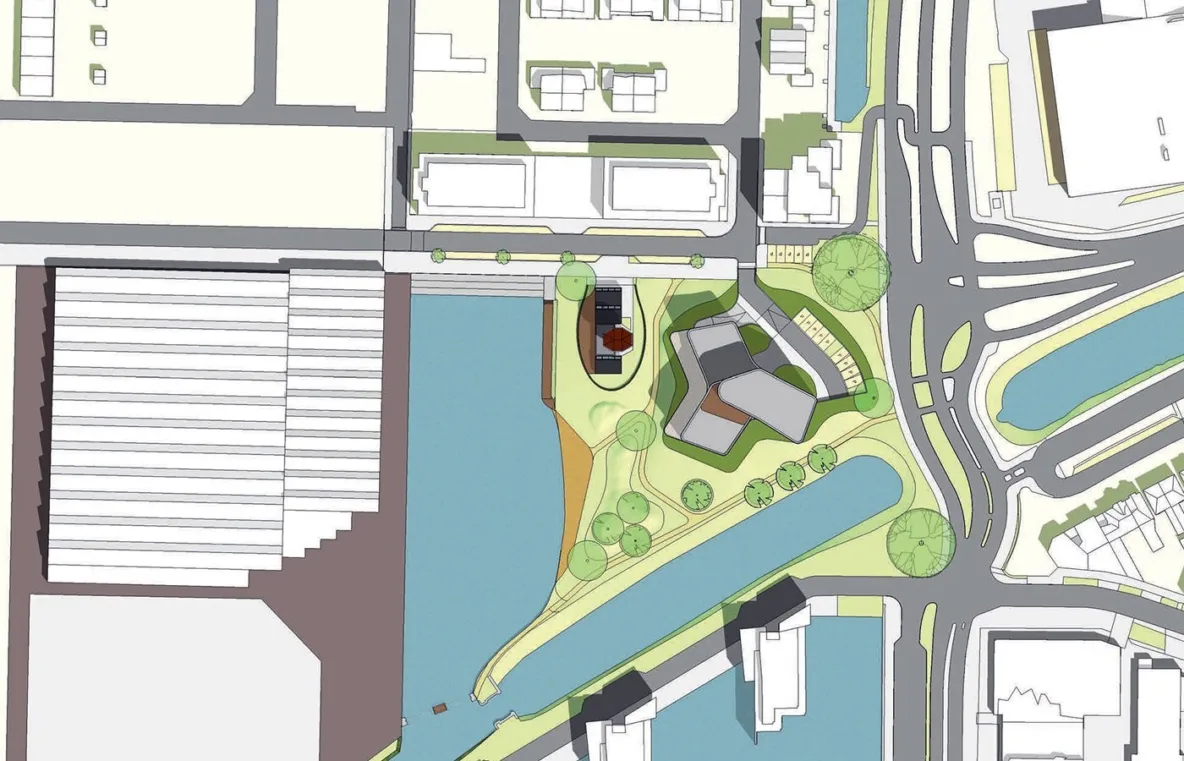 Het Indiëterrein is onderdeel van de textielhistorie van Almelo en was tot 2001 in gebruik bij Koninklijke Ten Cate. In 2009 heeft Urhahn Urban Design het ontwikkelplan Indië opgesteld voor de herontwikkeling van het fabriekscomplex tot een binnenstedelijk woonwerkgebied. Voor deelplan 14C ‘Waterplein’ ontwierp IAA Architecten een beeldbepalend appartementengebouw dat als hoogteaccent een overgang vormt tussen het centrum van Almelo en de rest van het Indiëterrein.