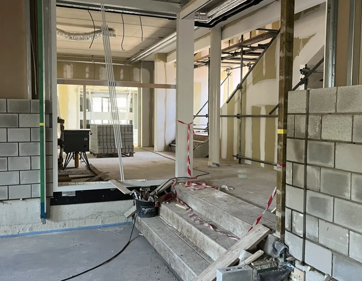 De bouw bevindt zich momenteel in de meest intensieve fase waarbij zowel de laatste zaken van de ruwbouw als ook de afbouw en installaties op alle niveaus worden gerealiseerd. En dat alles zeer zorgvuldig door aannemersbedrijf Jansman Bouw. Langzaam ontstaan de ruimten zoals we die samen met de opdrachtgever en gebruikers hebben uitgedacht en van de eerste indrukken worden we heel blij. De verwachting is dat de geplande oplevering in februari 2025 gehaald wordt.