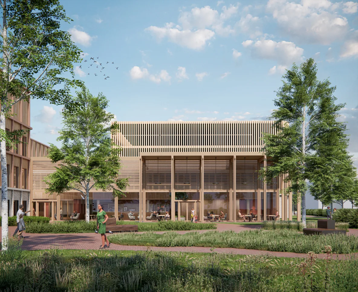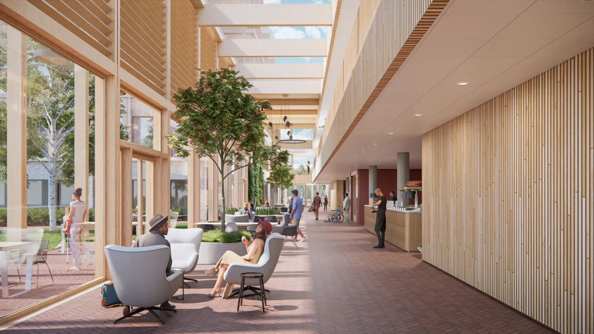 Deze uitdagingen hebben we opgepakt door het programma onder te brengen in een drietal paviljoens die verbonden zijn met een "lobby" waar patiënten, bezoekers en personeel zich in een niet strikt medische omgeving welkom voelen. Door de zachte vormgeving (ronde hoeken) en materialisering (veel hout en verfijnde gevelritmiek) oogt het geheel kleiner en vriendelijker. En wordt de relatie met de (toekomstig) groene omgeving veel sterker.