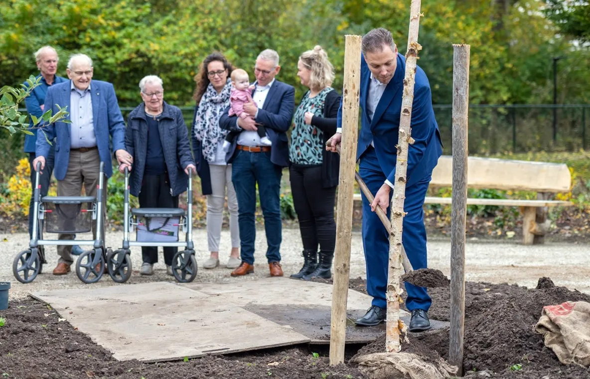 Afgelopen vrijdag 28 oktober was de feestelijke, officiƫle opening van de vernieuwde woonzorglocatie Altingerhof in Beilen. Na toespraken van Henk Gersen (IAA Architecten), Frans Horstink (manager woonzorg Icare) en Dennis van Achthoven (algemeen directeur Icare) kreeg Frans Horstink namens alle bouwers een cheque uitgereikt door Henk Gersen. Daarna plantte Dennis Bouwman (wethouder gemeente Midden-Drenthe) een herdenkingsboom, samen met vier generaties: een bewoonster van Altingerhof, samen met haar zoon, kleindochter en achterkleinkind.